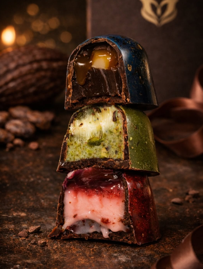 Selecciones de chocolate y licor pensadas para acompañar momentos especiales.