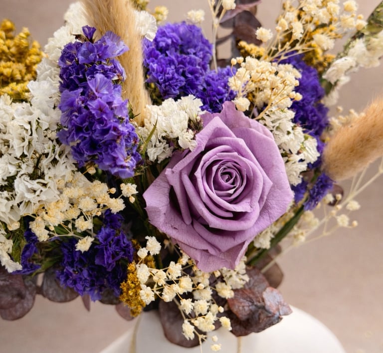 Flores preservadas que conservan su belleza por años sin agua ni cuidados especiales.